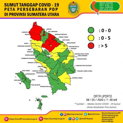 Peta Persebaran PDP di Provinsi Sumatera Utara 8 Mei 2020