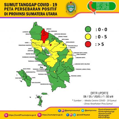 Peta Persebaran Positif di Provinsi Sumatera Utara 8 Mei 2020
