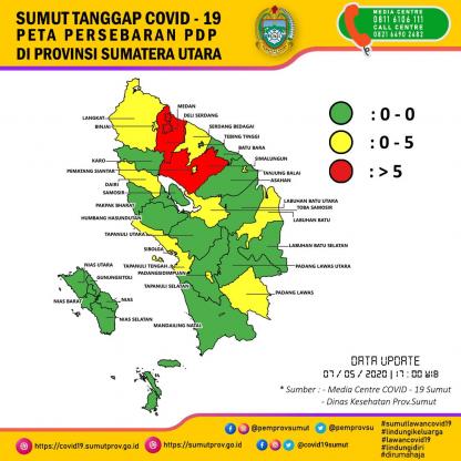 Peta Persebaran PDP di Provinsi Sumatera Utara 7 Mei 2020