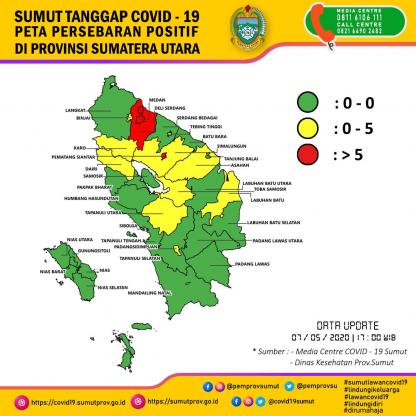 Peta Persebaran Positif di Provinsi Sumatera Utara 7 Mei 2020