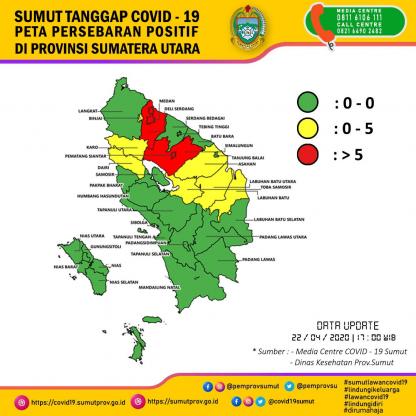 Peta Persebaran Positif di Sumatera Utara 22 April 2020