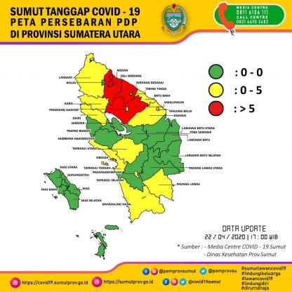 Peta Persebaran PDP di Sumatera Utara 22 April 2020
