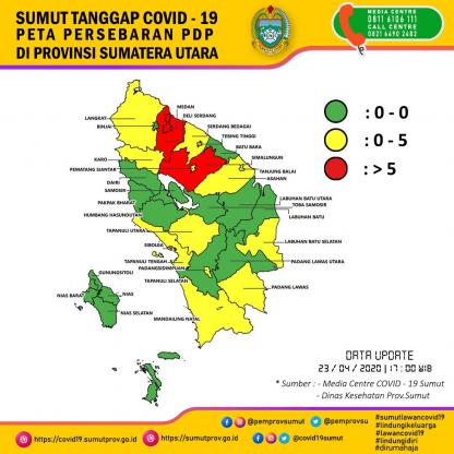 Peta Persebaran PDP di Provinsi Sumatera Utara 23 April 2020
