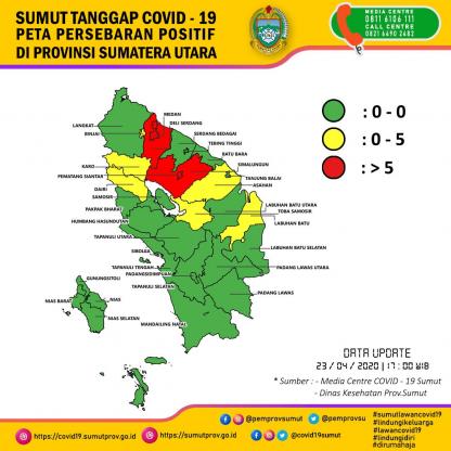 Peta Persebaran Positif di Provinsi Sumatera Utara 23 April 2020