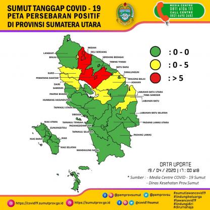 Peta Persebaran Positif di Sumatera Utara 19 April 2020