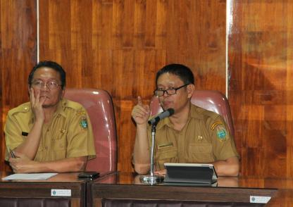 Kepala Dinas Kominfo Provsu Drs. Jumsadi Damanik, SH, M.Hum didampingi pejabat eselon III dan IV di ....