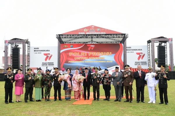 Peringatan Hari Bhayangkara ke-77 kali ini berlangsung sangat meriah, diwarnai dengan aksi terjun payung, bazar UMKM dan syukuran yang dimeriahkan seluruh tamu dan undangan. Hadir pada Upacara HUT ke-77 Bhayangkara Ketua DPRD Sumut Baskami Ginting, Pangdam I/BB Mayjen TNI Achmad Daniel Chardin, serta unsur Forkopimda lainnya. Hadir juga Ketua MUI Sumut Maratua Simanjuntak, tokoh-tokoh agama, tokoh masyarakat serta OPD terkait Pemprov Sumut.** (H15/DISKOMINFO SUMUT)