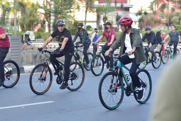 "Kalau bersepeda kita bisa lihat lebih dekat dan lebih detail jalur-jalur yang kita lalui, itulah yang kita harapkan sehingga Pak Presiden bisa memberikan arahan tentang penataan Kota Medan," kata Edy Rahmayadi.