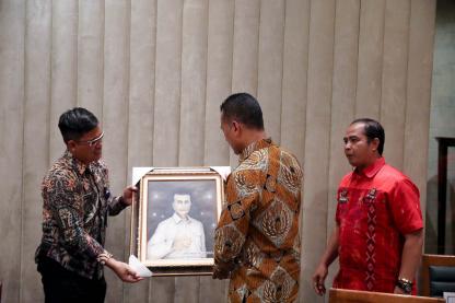 MEDANWakil Gubenur (Wagub) Sumatera Utara (Sumut) Musa Rajekshah menerima lukisan yang dibuat langsu....